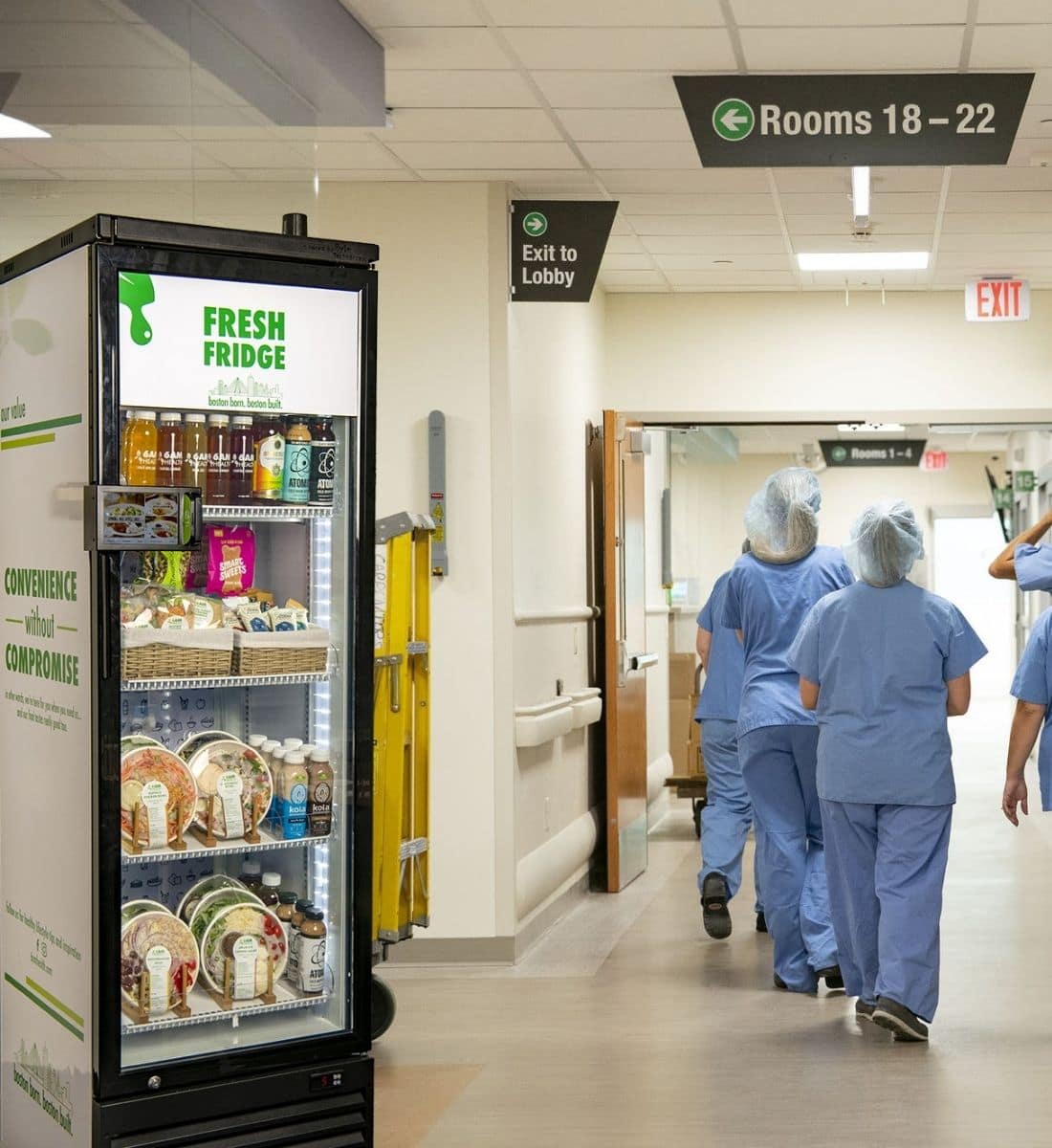 Healthcare settings benefit from a 24/7 fresh food option available to employees, patients, and visitors.